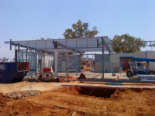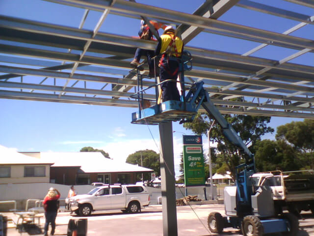 - Fabrication of steel work for a new shop and canopy